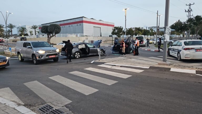 תאונת דרכים עם מעורבות שני כלי רכב, שאחד מהם התהפך, אירעה ברחוב