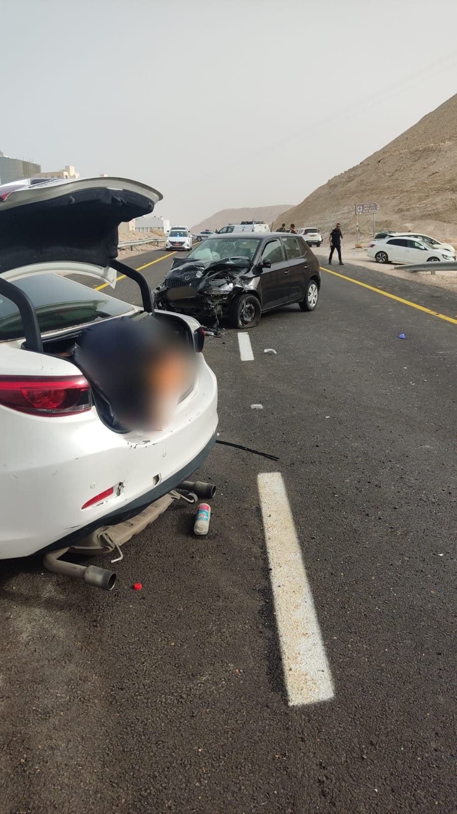 מדובר בתאונת דרכים קשה בין שני כלי רכב. חובשים ופראמדיקים של מד"א בשיתוף כוח רפואה של צה"ל מעניקים טיפול רפואי ומפנים במסוק מד"א-הצלה אייר לבי"ח הדסה עין כרם וסורוקה, גבר ואישה כבני 40 במצב קשה, עם חבלה רב מערכתית.