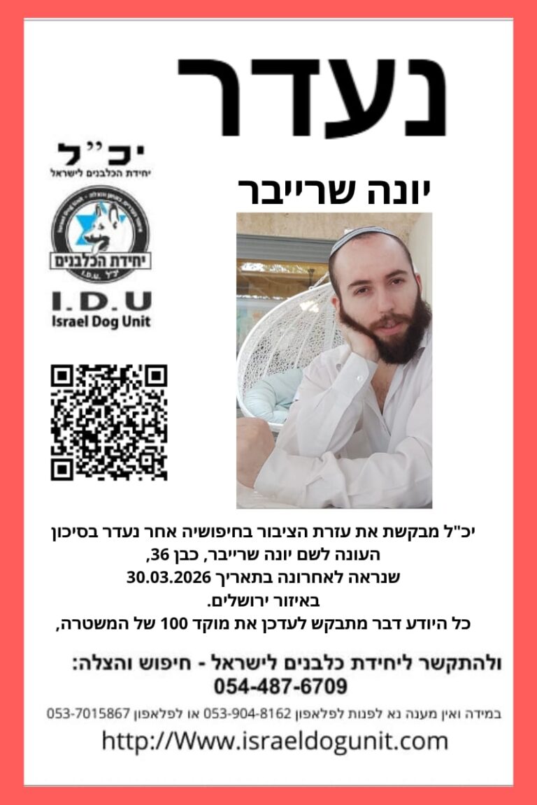 יכ"ל מבקשת את עזרת הציבור בחיפושיה אחר נעדר בסיכון, בשם יונה שרייבר,