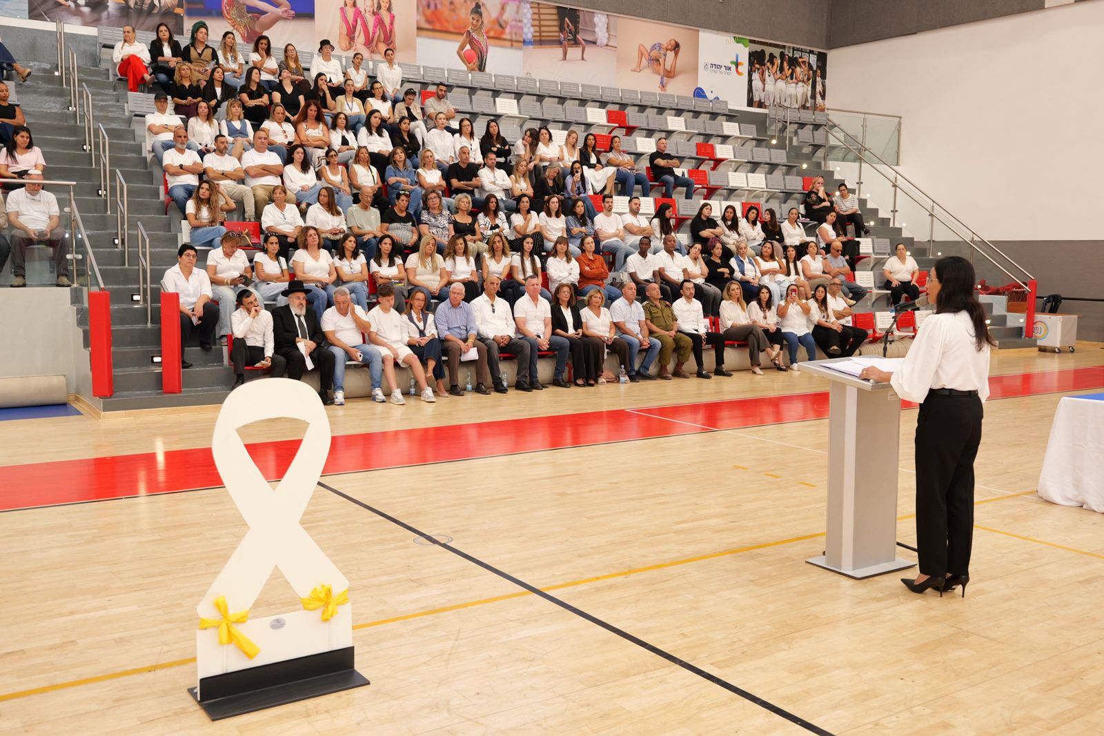 הטקס, בניהולה של ראש אגף החינוך דלילה אשכנזי, נפתח בשיר "שום דבר לא יפגע בי" לזכר הפרמדיקית עמית מן מקיבוץ בארי, שנרצחה תוך כדי טיפול בפצועים, ולאחר מכן נערכה דקת דומייה. במהלך הטקס נשאו דברים נציגי המשפחות השכולות, ראש העיר, הרב הראשי, ואורית מאיר – שדבריה ריגשו את הקהל.