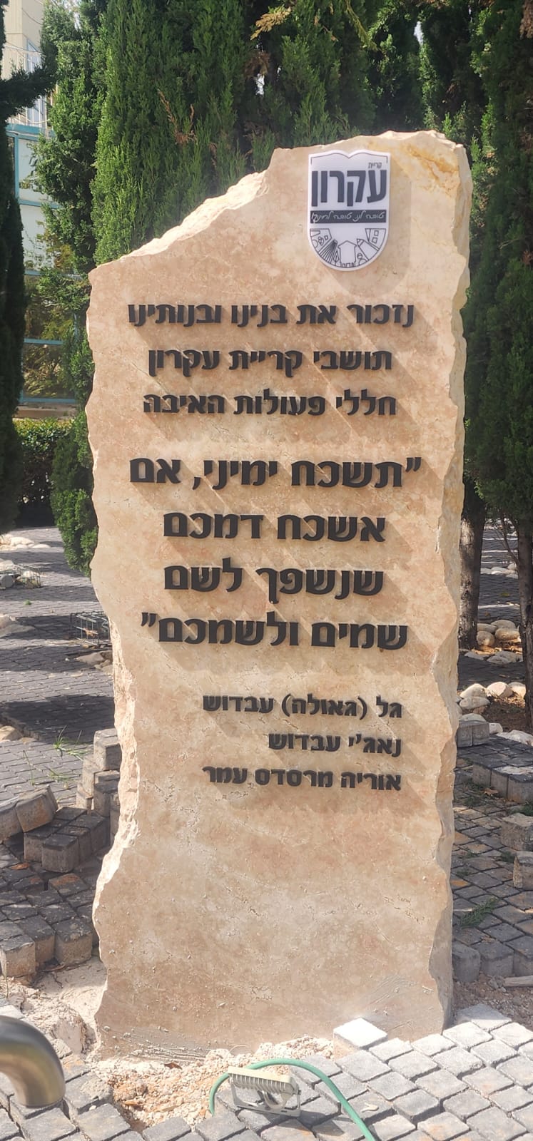 לקראת יום הזיכרון לחללי מערכות ישראל ונפגעי פעולות האיבה הוקמה אנדרטה לזכר נרצחי השבעה האוקטובר בסמוך לאנדרטת חללי מערכות ישראל בקריית עקרון.