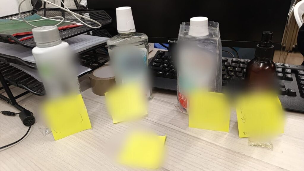 בתוך כך, בלשי המשטרה עצרו לחקירה את החשוד תושב המרכז – בשנות ה 30 לחייו ובחיפוש בכבודתו חשפו בקבוקים חשודים בהן נמצא כ- ליטר וחצי של סם מסוג GBL – הידוע בכינויו כ"סם האונס" .