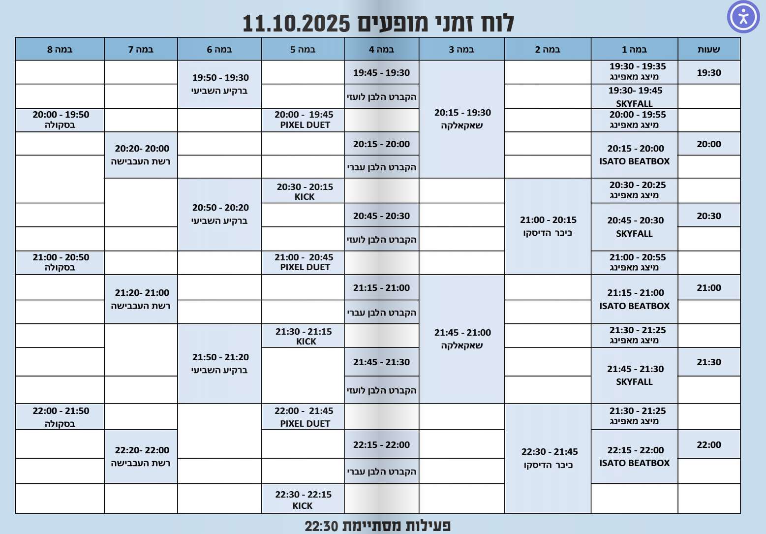 אל תחמיצו. המופעים יימשכו עד השעה 22:30. הנאה מובטחת.