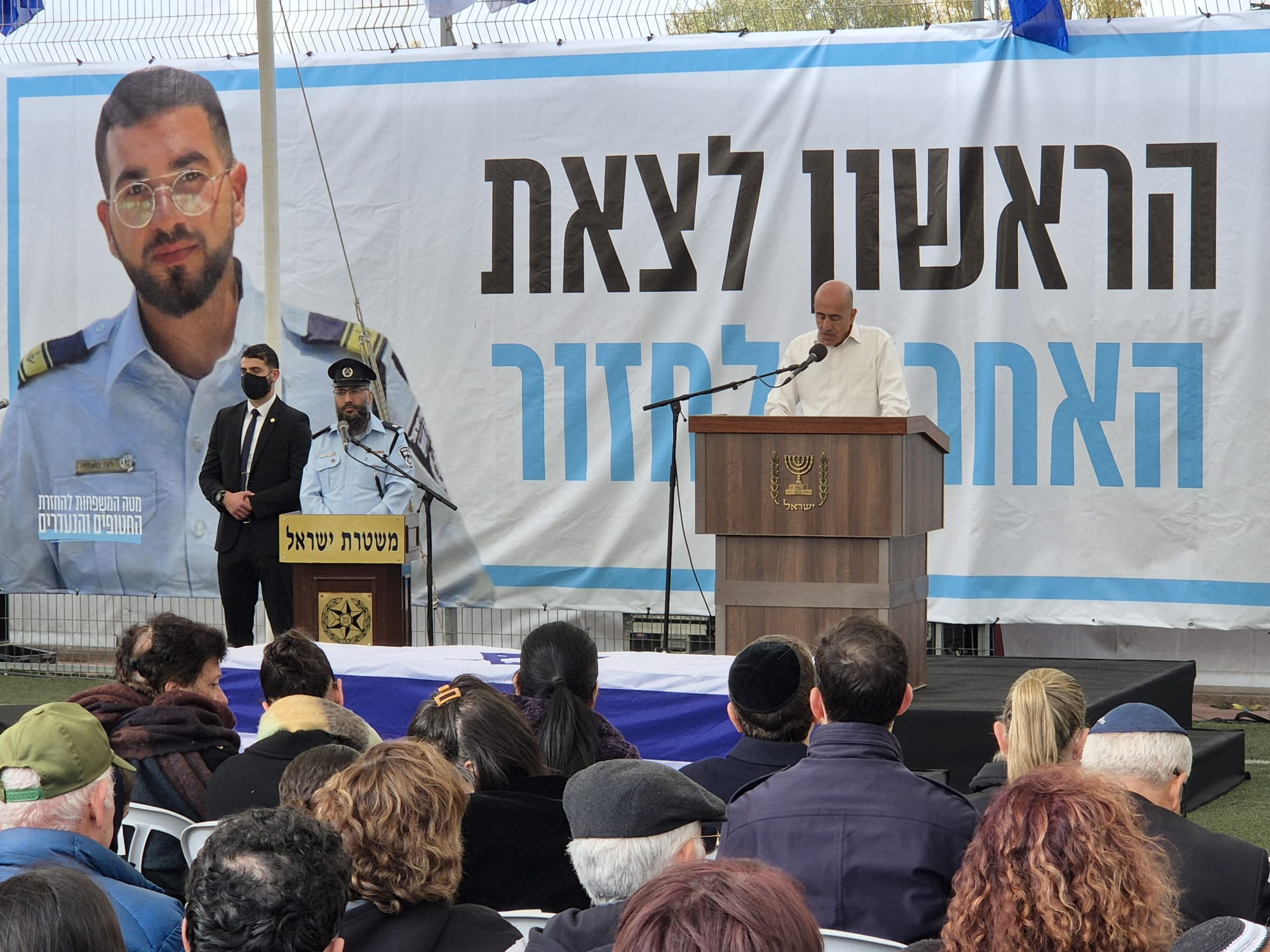 מסע הלוויה החל בשיירת כבוד ממחנה שורה, כאשר אלפי אזרחים עומדים בצדי הדרכים עם דגלי ישראל. בטקס ההספדים המרכזי במיתר השתתפו נשיא המדינה יצחק הרצוג, ראש הממשלה בנימין נתניהו, יו"ר הכנסת אמיר אוחנה, השר לביטחון לאומי איתמר בן גביר, מפכ"ל המשטרה רב-ניצב דני לוי וצמרת המשטרה.