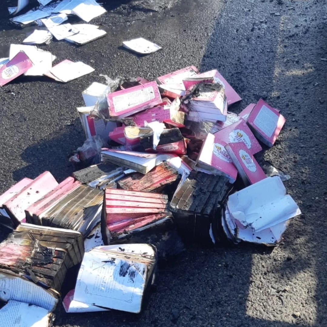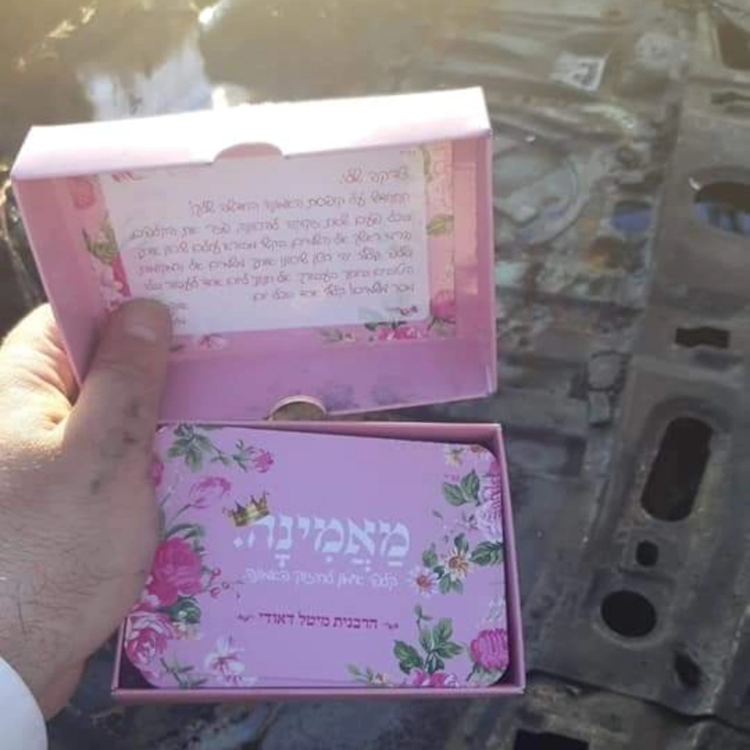לאחר שמכבי האש הגיעו וכיבו את האש, גילינו שהרכב הפך להיות גחל – אבל אף דף מהספרים לא נשרף, רק מהצדדים. כל קלפי "מאמינה" נשארו שלמים.