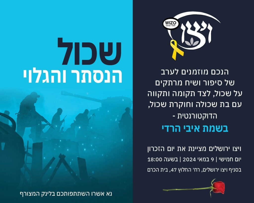 האירוע יתקיים ביום חמישי ה 9.5.24 בשעה 18:00 בסניף ירושלים, רחוב החלוץ 47, בית הכרם ירושלים.