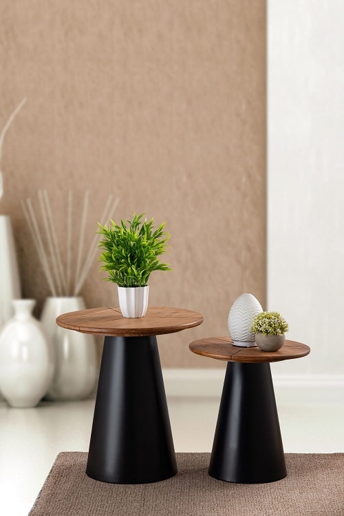 ישנם שולחנות קטנים בעלי משטח שולחן ומדף נוסף למטה, אשר יכולים להיות מגוונים בצורתם, הן מרובעים והן עגולים. הם ממוקמים ליד הספה ונוח ביותר להניח עליהם עיתונים, שלט רחוק לטלוויזיה, ספרים, פרחים ועוד דברים קטנים.