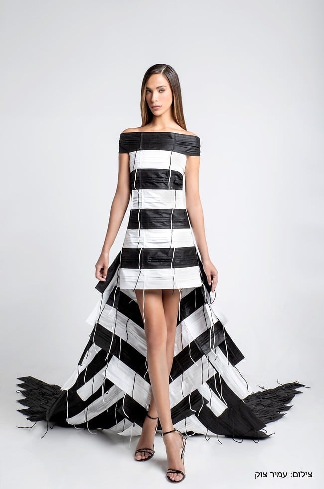 השמלה שזכתה לכינוי "שמלת אחרי קוביד-19" (After Covid-19) עשויה כולה ממאות מסכות בד בגווני שחור ולבן, אותן מסכות שהיו חלק בלתי נפרד מחיינו בשנה וחצי האחרונות מאז פרצה לחיינו המגפה הקשה. מה שבטוח, תהילה תעורר הרבה תשומת לב עם השמלה הייחודית הזו. אנחנו נחזיק אצבעות ונעקוב.