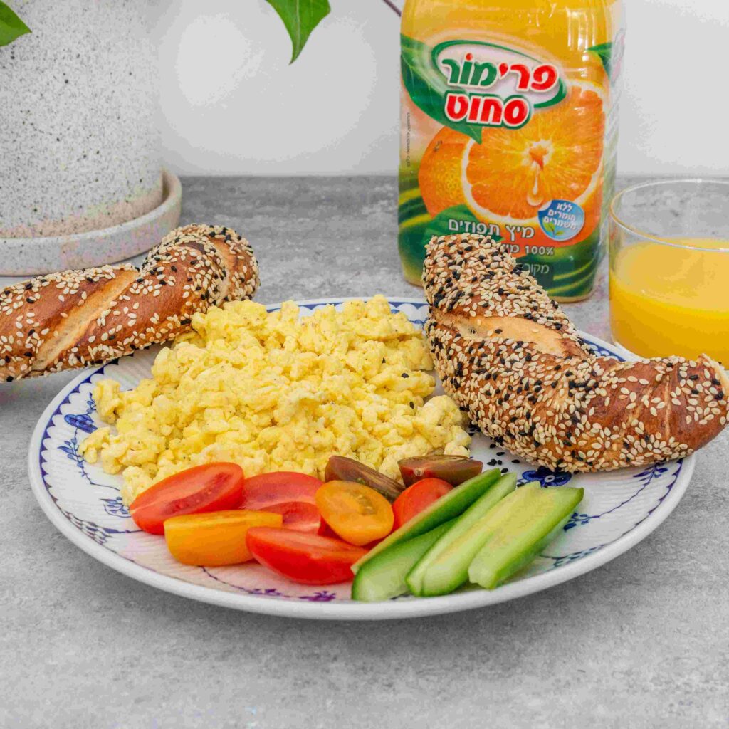 חברת "פרימור", יצרנית המיצים הסחוטים הטבעיים המובילה בישראל, מגישה יחד עם הבלוגרית אולגה טוכשר ("המרכיב הסודי"), מתכון לארוחת בוקר ישראלית קלאסית, עם טוויסט: מקושקשת תפוזים. תערובת ביצים מקורית בתוספת מיץ תפוזים, המעניקים לביצים מרקם אוורירי וטעם משגע. המתכון פשוט וקל להכנה, מתאים כארוחת בוקר או ערב, לצד בייגל וירקות טריים וכמובן, מיץ תפוזים סחוט טבעי. בתיאבון!