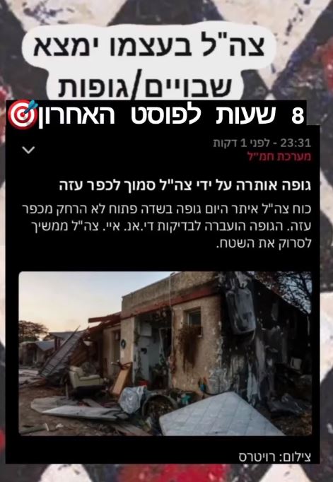 עדן הודיה כהן (כבר אמרתי לכם לזכור את השם): "יהיה שחרור חטופים עד חודש וחצי – שילוב של עסקה ושחרור אסירות, תהיה מציאת מנהרות ותחמושת וגם מציאת שבויים. תרשמי לך: כל מדינה שתעזור לעזה – יקרה לה משהו נורא. זה חודש של רעידות אדמה – מי שיזיק לישראל – יחטוף מלמעלה". על החטופים אמרה: "אני רואה יותר מהמספרים עליהם צה"ל מדבר. מספר החטופים נושק ל-300. אם רבע יחזרו – נגיד תודה. חלק צה"ל ימצא בעצמו, חלק יחזירו, חלק נקבל גופות וחלק לא נמצא בכלל. בין היתר יחטפו תינוק שרק נולד".