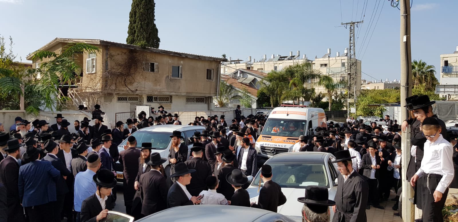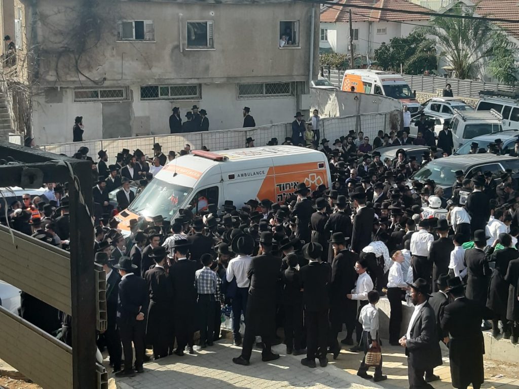 מיטתו של האדמו"ר זצ"ל בדרכה כעת להלוויה ברחובות באמבולנס של איחוד הצלה.