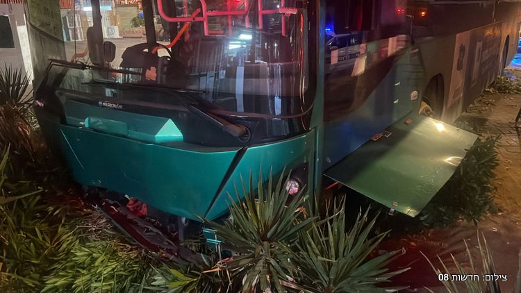 נהג אוטובוס איבד שליטה, סטה מנתיב נסיעה, עלה על המדרכה, עקר עץ, ספסל ושבר גדר – רק בנס נעצר האוטובוס מטרים ספורים לפני התנגשות בחנות.