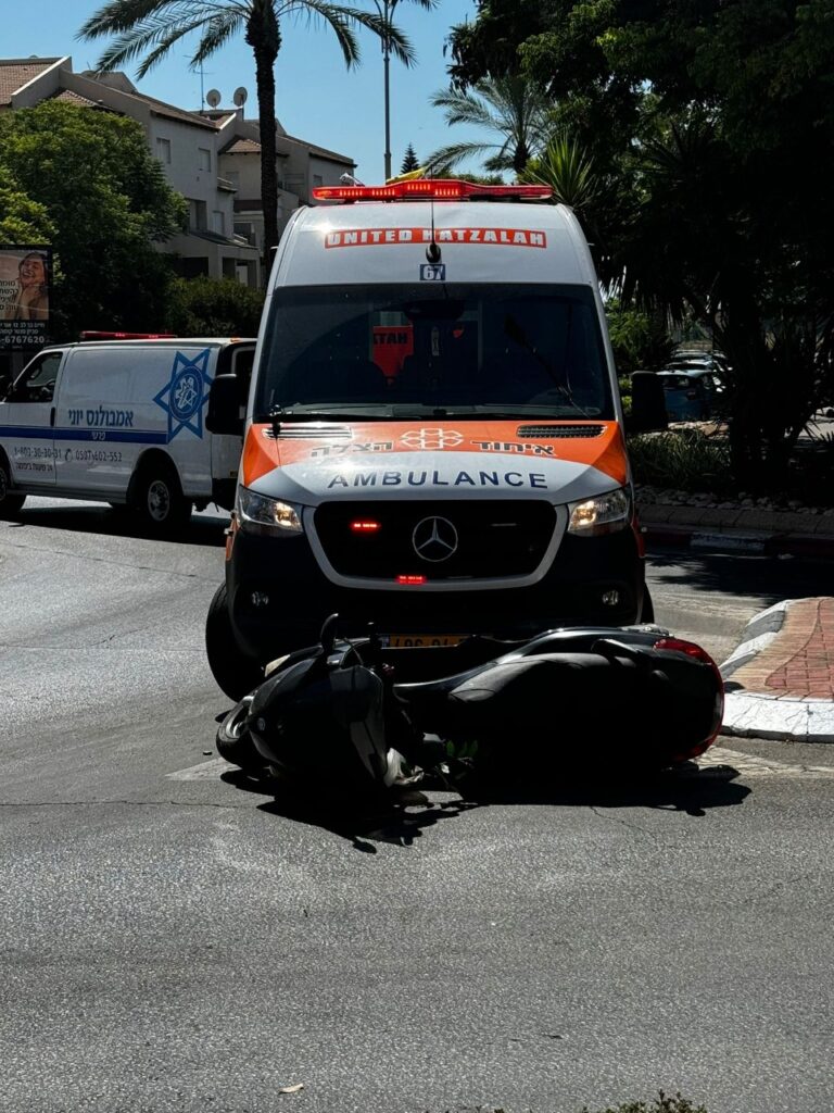 תאונה עם מעורבות רכב פרטי ורוכב קטנוע אירעה ברחוב חיים בר-לב באור יהודה.