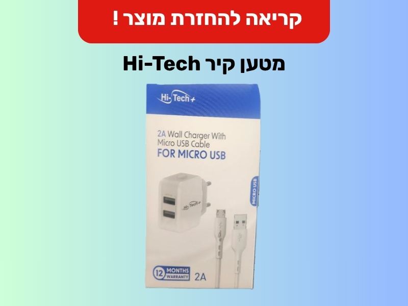 קריאה להחזרת מוצר (Recall): הממונה על התקינה מפרסם הודעה דחופה לצרכנים המחזיקים במטען קיר הממותג תחת השם Hi-Tech, אשר שווק בחנויות עד לתאריך 09/02/2026. בבדיקה שנערכה נמצא כי המוצר אינו עומד בדרישות התקן הישראלי הרשמי (ת"י 62388 חלק 1) ומהווה סכנה ממשית למשתמשים.