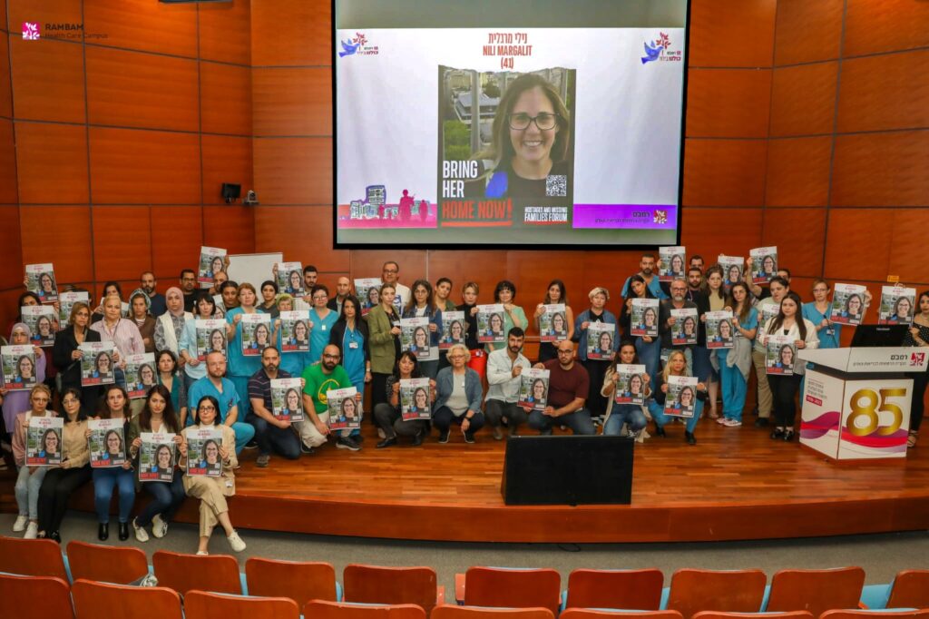 "אנחנו עומדים פה הבוקר, לאות סולידריות, עם אחותינו למקצוע נילי מרגלית, אחות במלר"ד ילדים בסורוקה, שנמצאת כעת בשבי החמאס, כמו גם תינוקות, ילדים, נשים, גברים וקשישים רבים", אמרה גילה היימס, מנהלת הסיעוד ברמב"ם, "נילי עסקה בטיפול, במתן סיוע ומזור לילדים, בריפוי וברפואה, ללא הבדלי דת וגזע. כולנו רוצים לראות את כל החטופים בבית. היום. שלמים ובריאים וקוראים לחמאס לשחררם באופן מיידי".