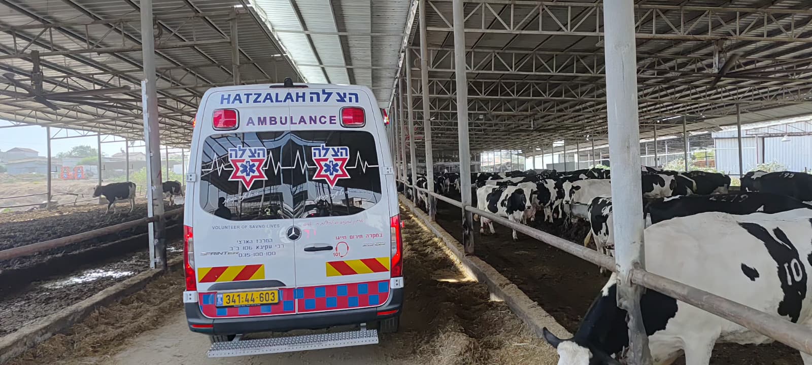 זאב קרשינסקי ומשה רוטשילד חובשי איחוד הצלה מסרו: "נמסר לנו בזירה כי הוא נחבל בגפיו לאחר שנפל מגג רפת עליו עבד. הענקנו לו סיוע רפואי ראשוני ולאחר מכן הוא פונה לבית חולים במצב בינוני".