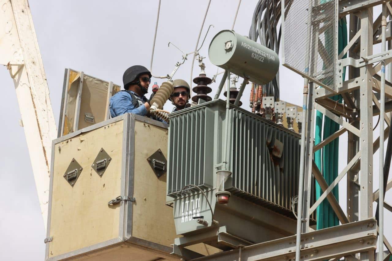 צוותי חברת החשמל תיקנו את נזקי הירי על רשת החשמל בעוטף קיבוץ ניר עוז, בסמוך לגדר המערכת מול ח'אן-יונס