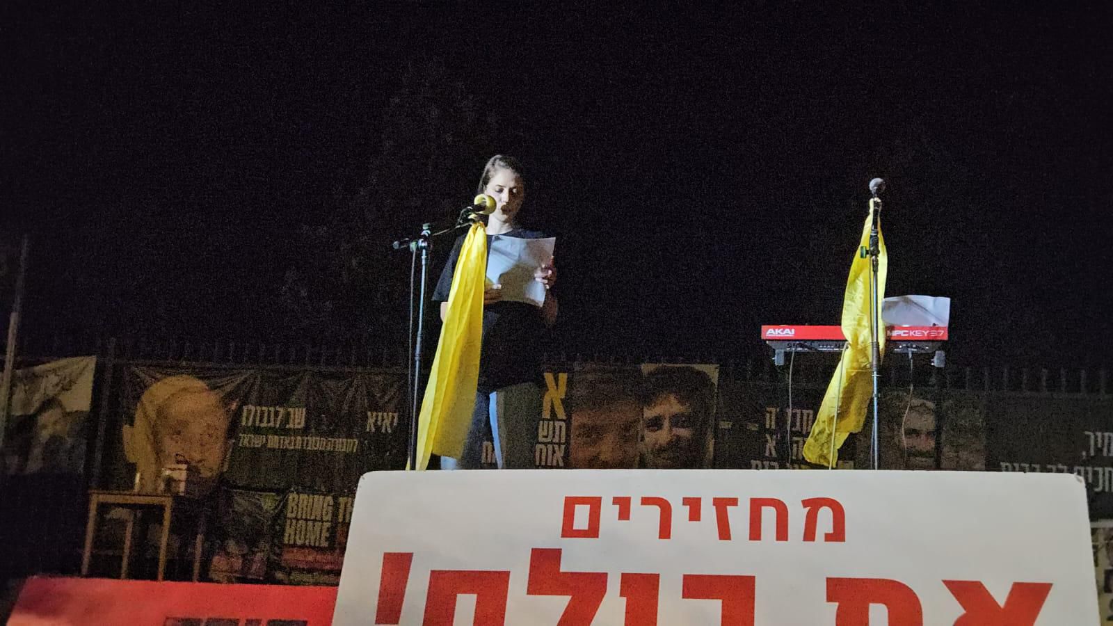גם בעצרת בכרמי גת נשאה דברים מיכל לביא, גיסתו של עמרי מירן. היא תהתה בכאב: "מדינת ישראל הוקמה על האמירה 'לעולם לא עוד'. ואיך קרה ש'לעולם לא עוד' קורה עכשיו?". היא התייחסה לסרטונים של רום ברסלבסקי ואביתר דוד: "בגופם המיוסר, בצלעותיהם הבולטות, ובעיניהם הפעורות, [הם] זועקים אלינו מתוך התופת". לביא קראה למקבלי ההחלטות להפסיק את הקיפאון ולחתום על "הסכם כולל שיביא להשבת כולם".