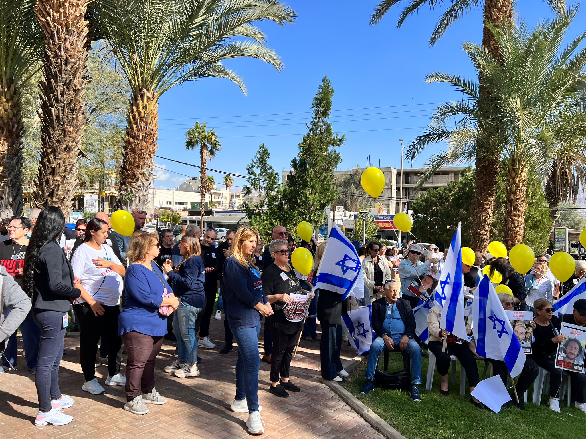 מאות מתושבי אילת, עובדים וגמלאים מעשרות ארגונים ומקומות עבודה השתתפו היום (א׳) בעצרת הזדהות ותמיכה למען החטופות והחטופים, שהובילה ההסתדרות במרחב אילת. כל המשתתפים נשאו בלונים צהובים ואת תמונותיהם של 136 החטופות והחטופים שעדיין בשבי.