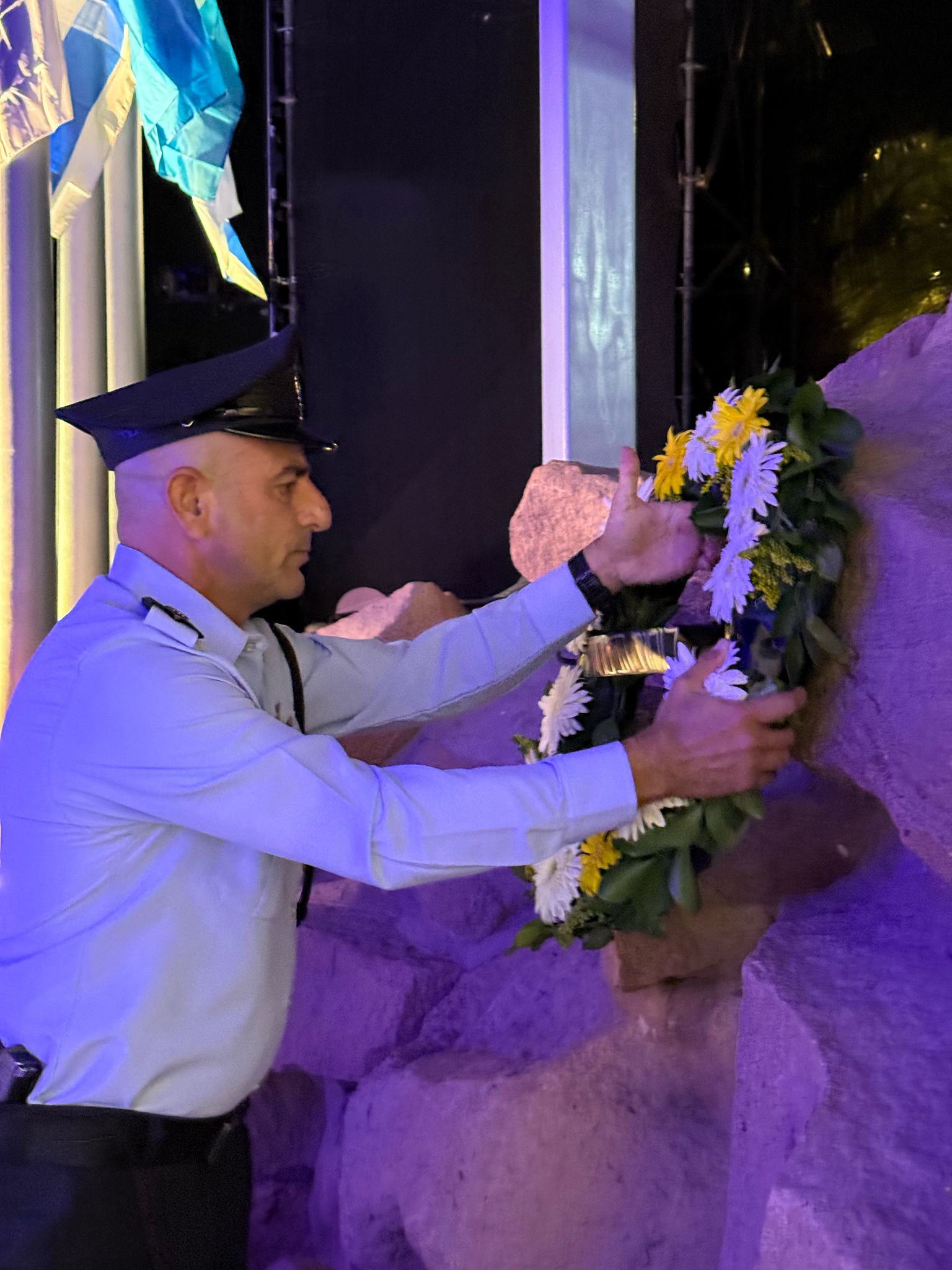 את זר העיר הניח ראש העירייה – אלי לנקרי, את זר יד לבנים הניחו זהבה ומשה דמארי – הוריו של רס"ר במיל' מתן דמארי ז"ל. את זר נפגעי פעולות האיבה הניחו ויקי ואבי אביטן הוריו של דור אביטן שנרצח בשבעה באוקטובר 2023 במסיבת הנובה. את זר ארגון אלמנות ויתומי צה"ל הניחה שרה סלע, אלמנתו של רב סמל ראשון סלע יוסף ז"ל שנפל בנובמבר 1983, את זר כוחות הביטחון הניח נצ"מ אליהו שמול – מפקד משטרת מרחב אילת.