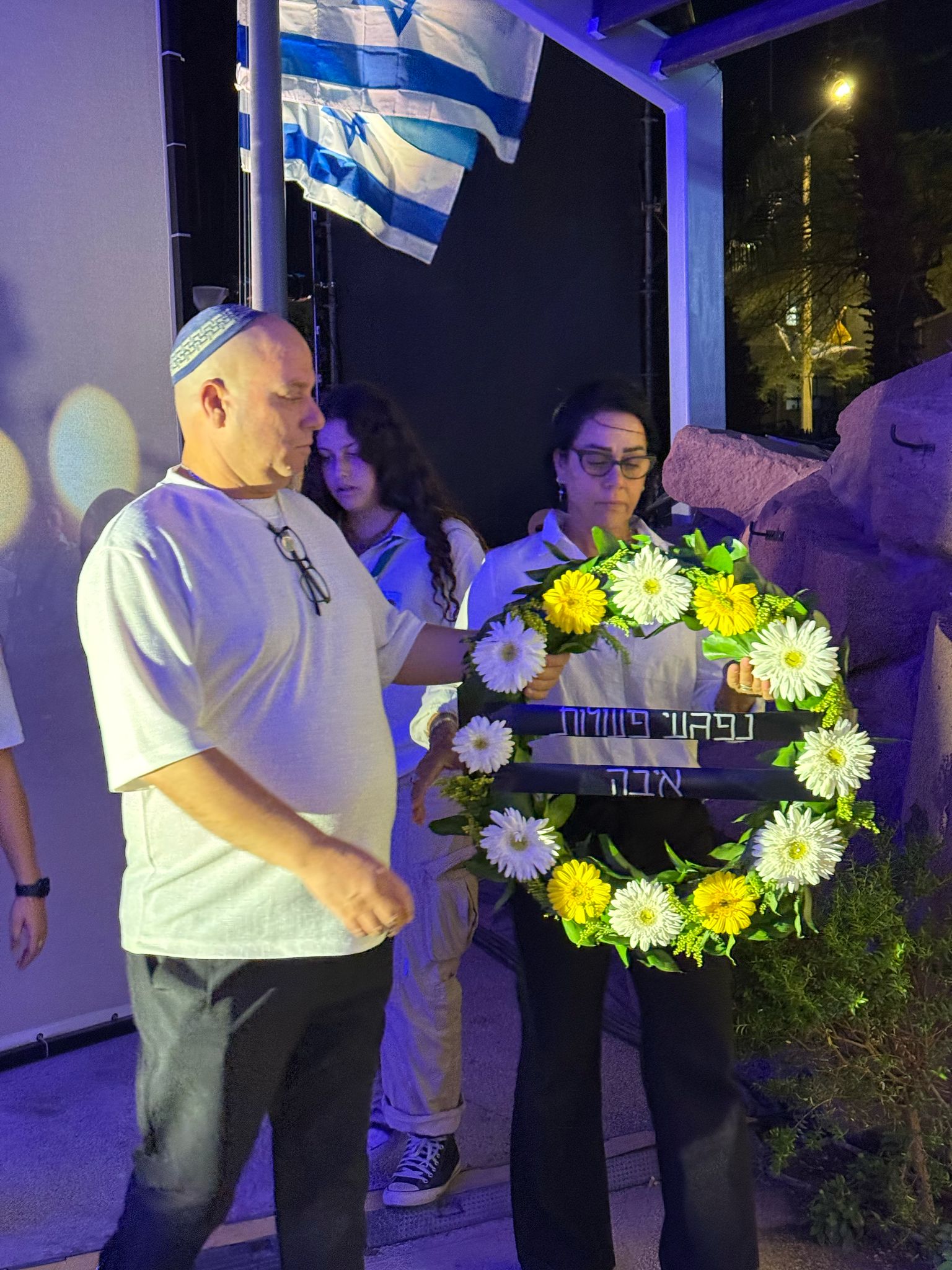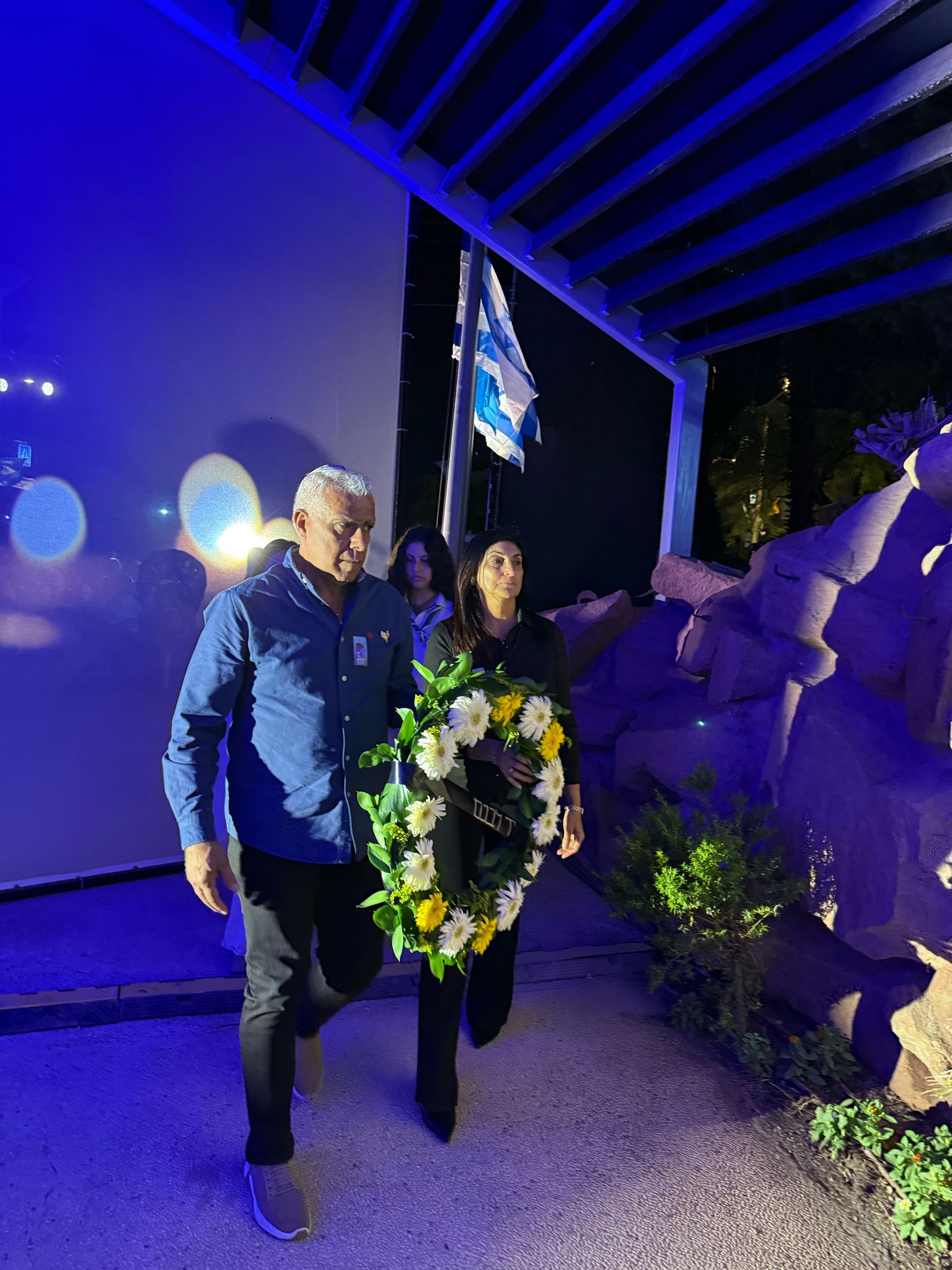 את זר העיר הניח ראש העירייה – אלי לנקרי, את זר יד לבנים הניחו זהבה ומשה דמארי – הוריו של רס"ר במיל' מתן דמארי ז"ל. את זר נפגעי פעולות האיבה הניחו ויקי ואבי אביטן הוריו של דור אביטן שנרצח בשבעה באוקטובר 2023 במסיבת הנובה. את זר ארגון אלמנות ויתומי צה"ל הניחה שרה סלע, אלמנתו של רב סמל ראשון סלע יוסף ז"ל שנפל בנובמבר 1983, את זר כוחות הביטחון הניח נצ"מ אליהו שמול – מפקד משטרת מרחב אילת.