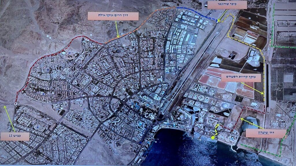 ייסגרו לתנועה: רחוב שופרון, כביש עוקף בריכות המלח עד כיכר טורונטו, כביש עוקף מלונות קריית הספורט, וכביש עוקף אילת מערבי – דרך הרים עד כיכר היציאה לכביש 12.