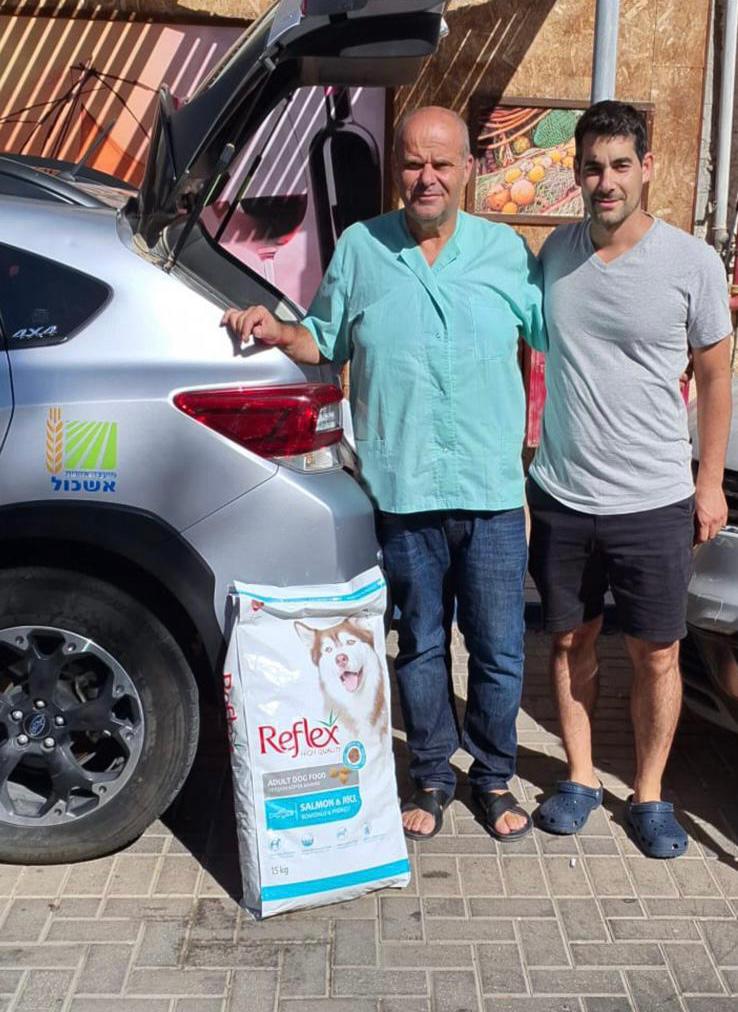 לצד תרומות רבות של מזון לכלבים, נרתם גם אגף השירותים הווטרינריים במשרד החקלאות ופיתוח הכפר ובשיתוף פעולה עם הווטרינר העירוני – ד״ר אורן אברמוביץ התקבלו 60 שקים של מזון לכלבים. רובם חולקו כבר על ידי אגף השירות הווטרינרי בעירייה לחבל אשכול באמצעות תברואן המועצה, למלון קלאב הוטל שם יש לא מעט מפונים עם כלבים, למרכז העירוני לאיסוף וחלוקה בטרמינל ולעמותות באילת.