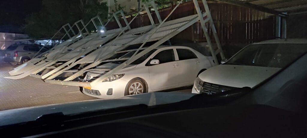 רוחות חזקות עדיין בעיר הנופש הדרומית, בעקבות מזג האוויר הסוער אתמול בלילה נשברו סככות שנפלו ישר על הרכבים.