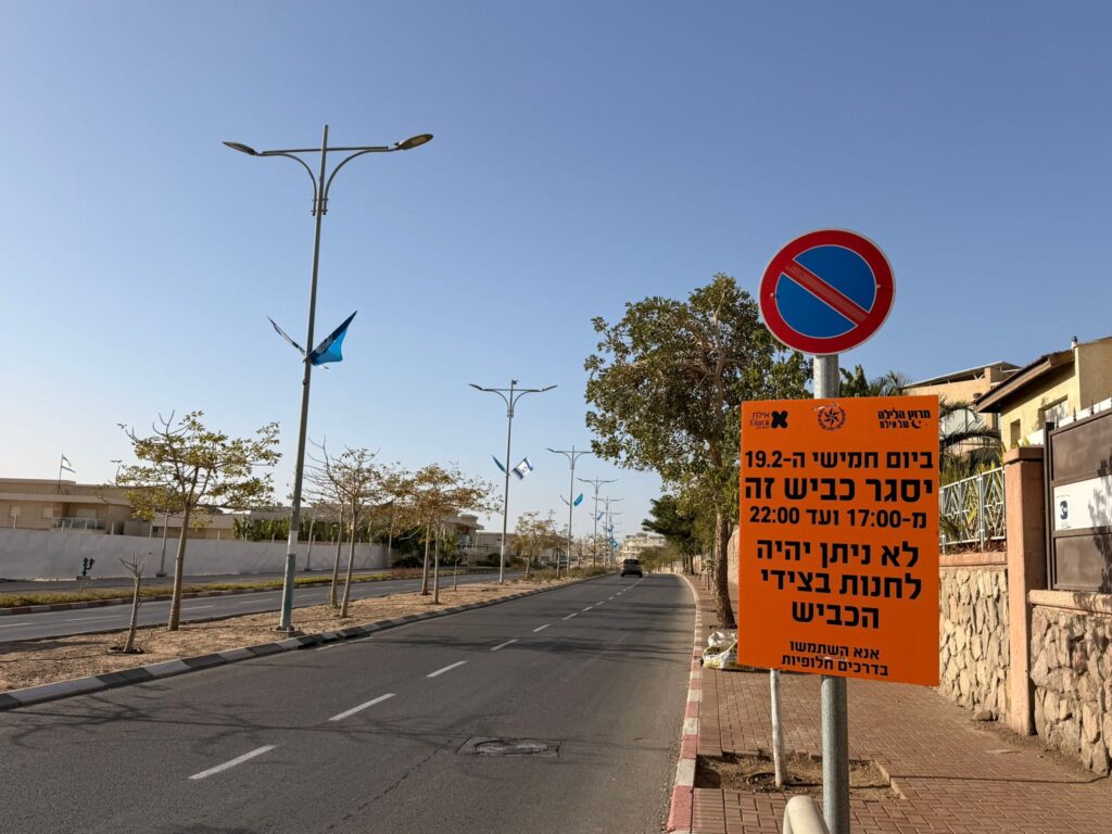 רחוב עין יהב: ייסגר משני הכיוונים מכיכר המפרשים ועד כיכר גיא לי.