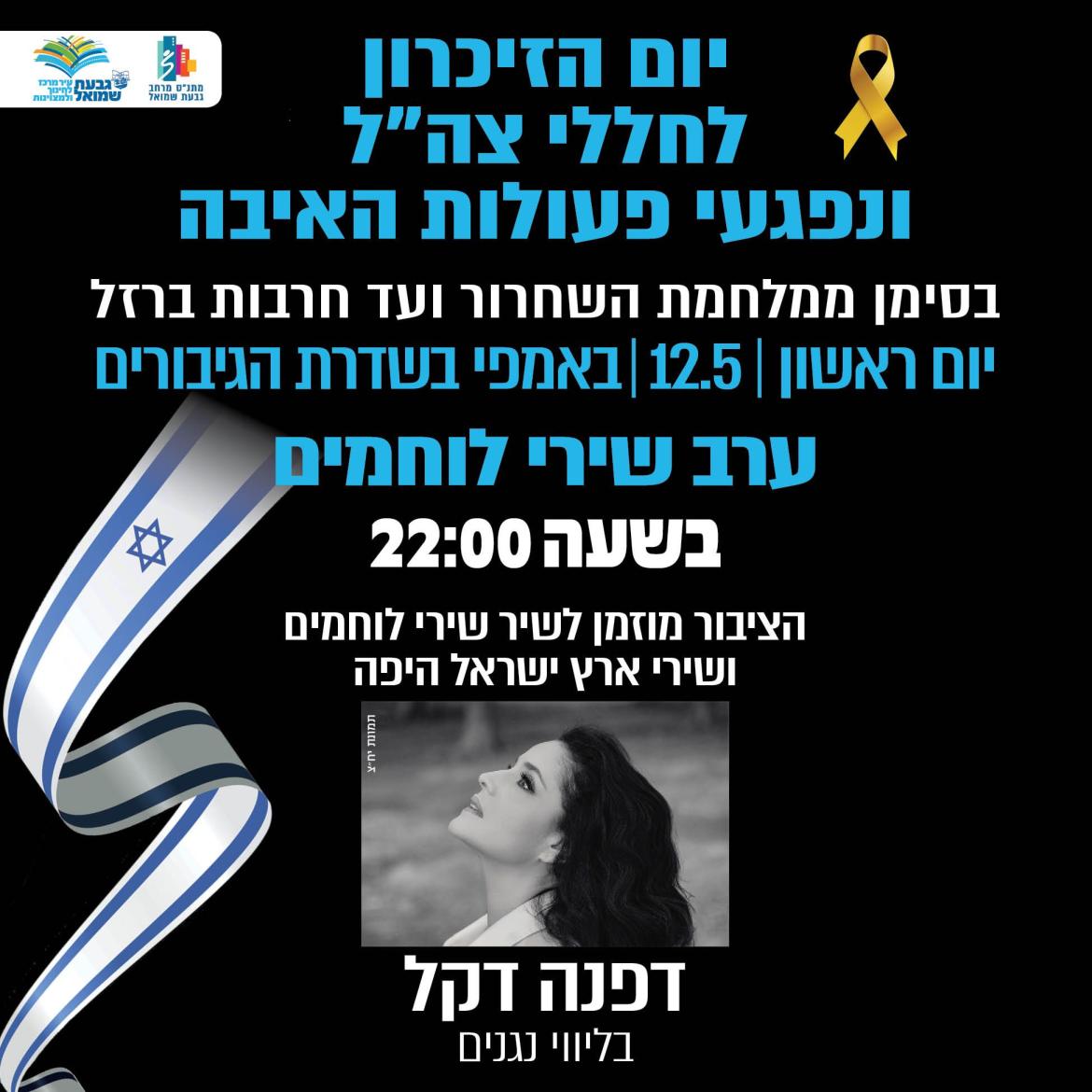 הציבור מוזמן לשיר שירי לוחמים ושירי ארץ ישראל היפה עם דפנה דקל בליווי נגנים
