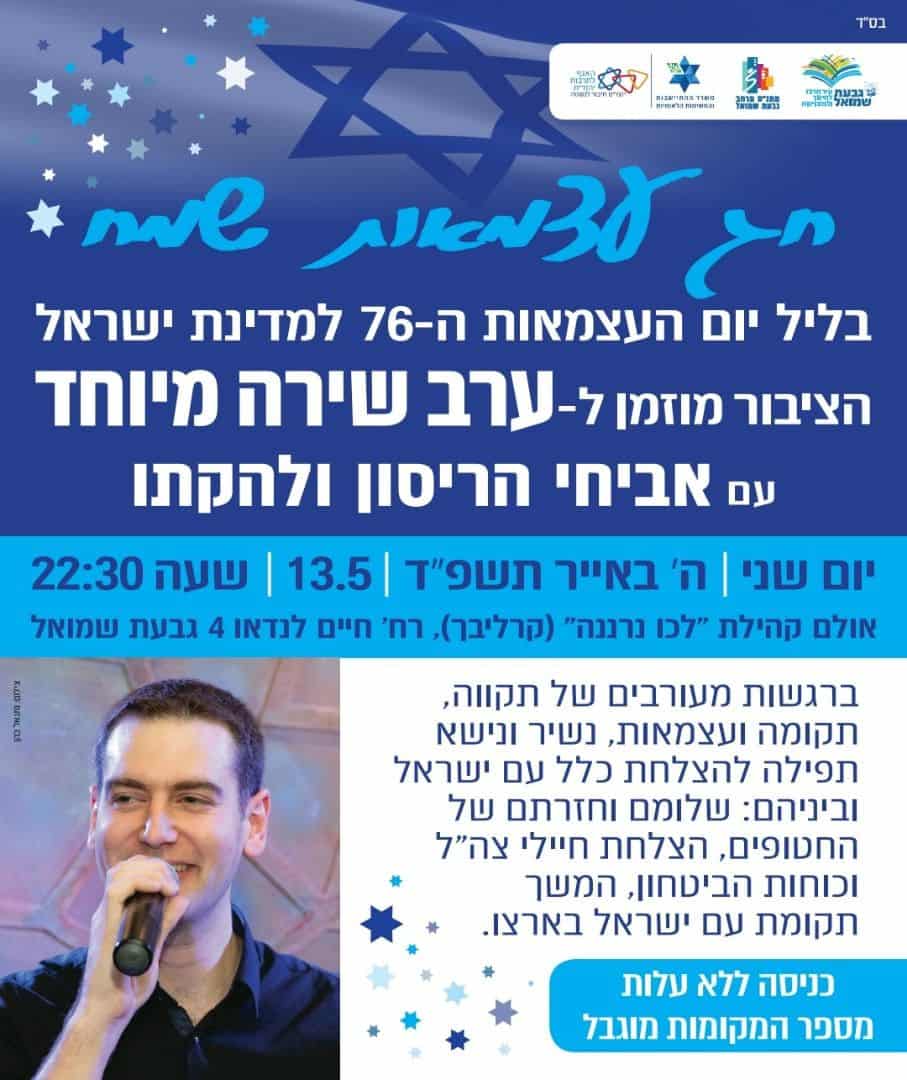 חג עצמאות שמח: ערב שירה מיוחד עם אביחי הריסון
