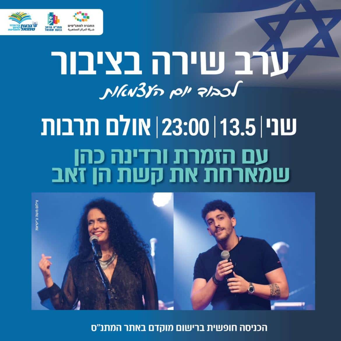 ערב שירה בציבור לכבוד יום העצמאות  אחרי הבמה המרכזית עם הזמרת ורדינה כהן שמארחת את קשת הן זאב