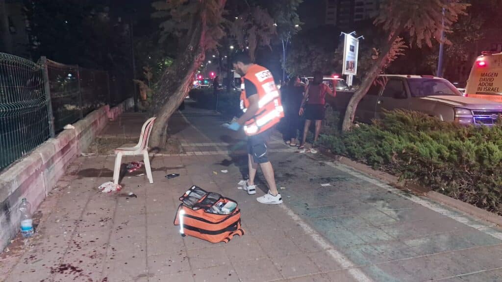 מד"א: בשעה 21:34 התקבל דיווח במוקד 101 של מד"א במרחב איילון על פצוע מאירוע אלימות בשדרות העצמאות ביבנה.