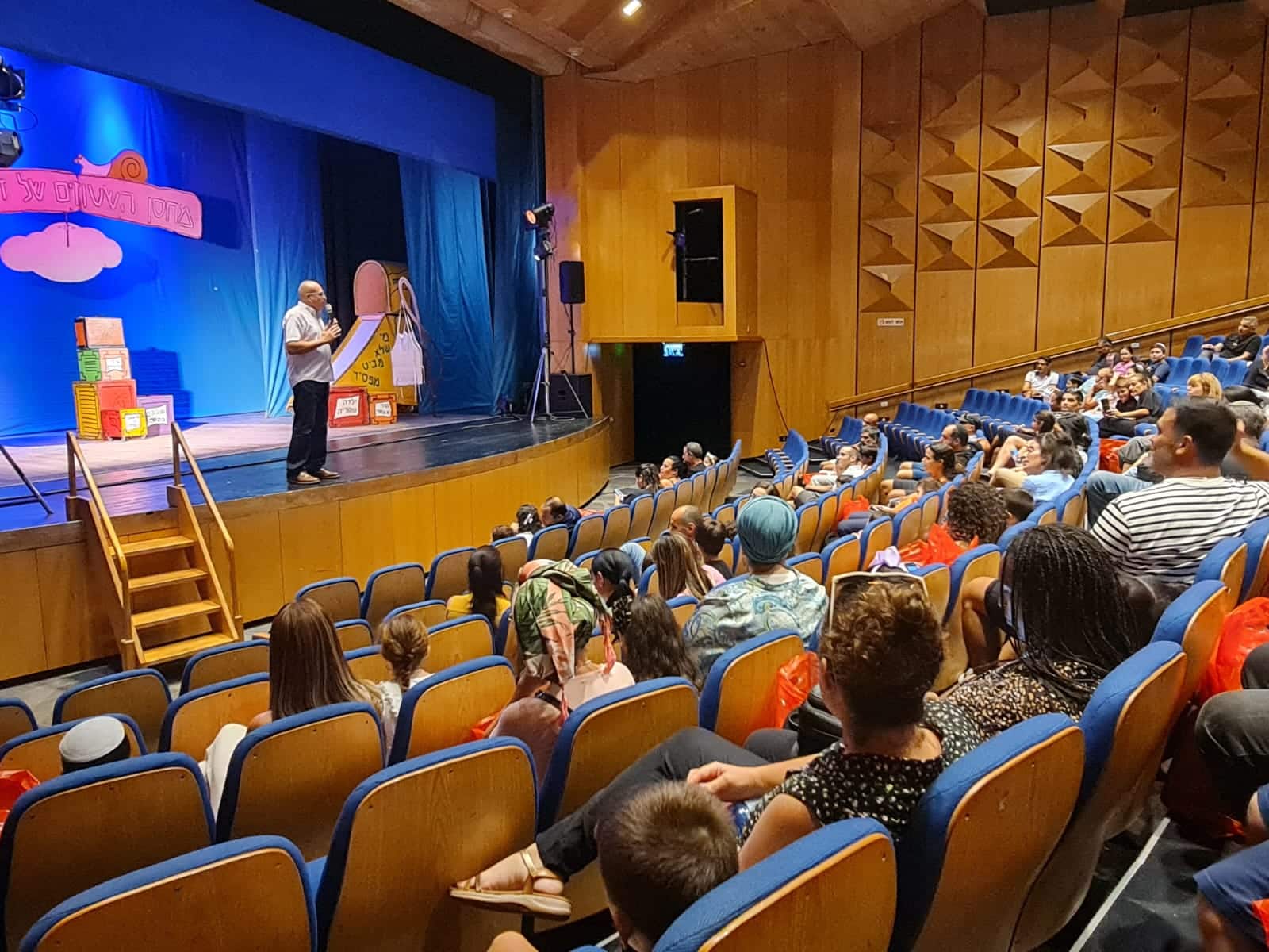 לאחר מכן צפו הילדים ובני המשפחה בהצגה "מחסן השטוזים" של תיאטרון אורנה פורת.ההצגה מספרת על 'מחסן השטוזים' של המשוררת, הסופרת והמלחינה דתיה בן דור.השליח שהגיע כדי למסור פיצה לגברת בן דור, פוגש את סבתא מינה מבנימינה, את הילדה עם המטריה, את הצבעים שהתבלבלו, את השובבים שבמיטה ועוד שירים, מנגינות וסיפורים של דתיה המסתתרים בתוך ארגזי המחסן הקסום ומלא ההפתעות.באירוע השתתפו כ- 155ילדים והורים, אשר קיבלו כשי ילקוטים עם קלמרים ושי מתוק לפתיחת השנה.הילדים נהנו ממפגש חינוכי ערכי לטובת תחילת דרכם במערכת החינוך.