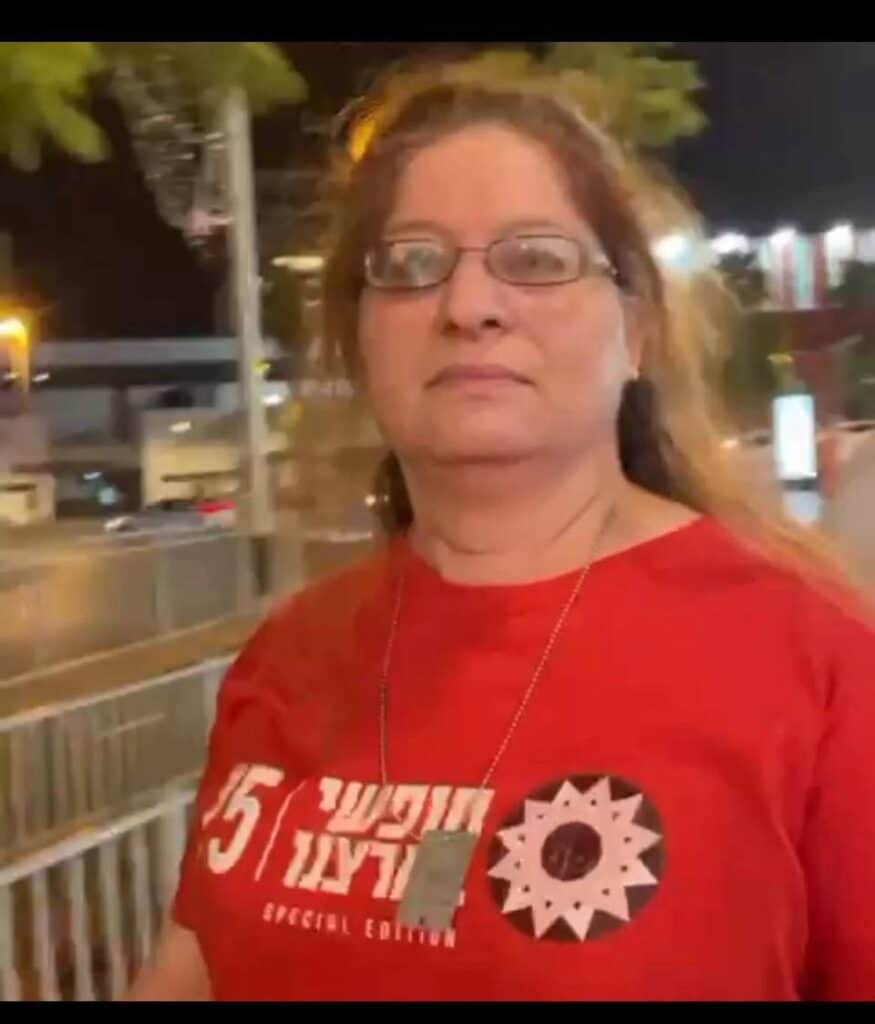 מפגינה הורידה כיסוי ראש לאישה דתיה חברת מועצת העיר חגית תלם רק כי עברה ליד ההפגנה שלהם וצעקה ״למה אתם מפגינים פה בזמן מלחמה״.