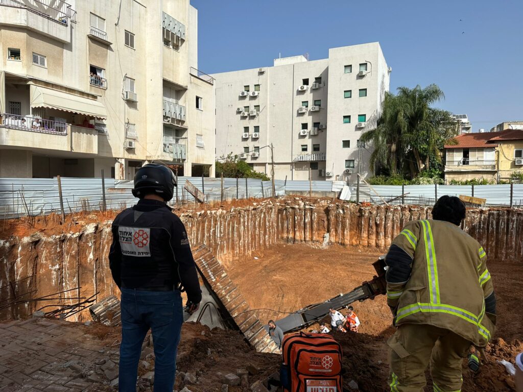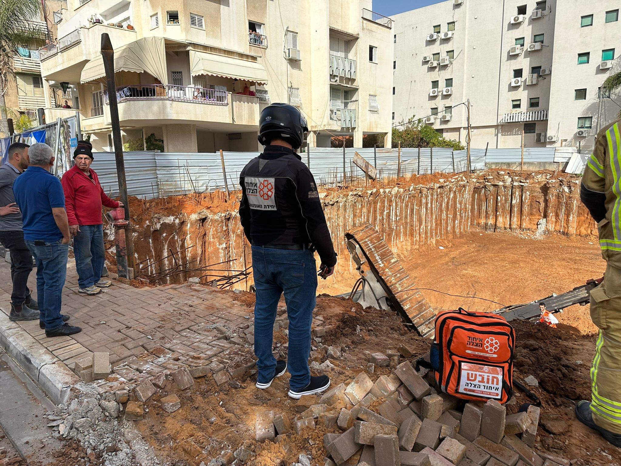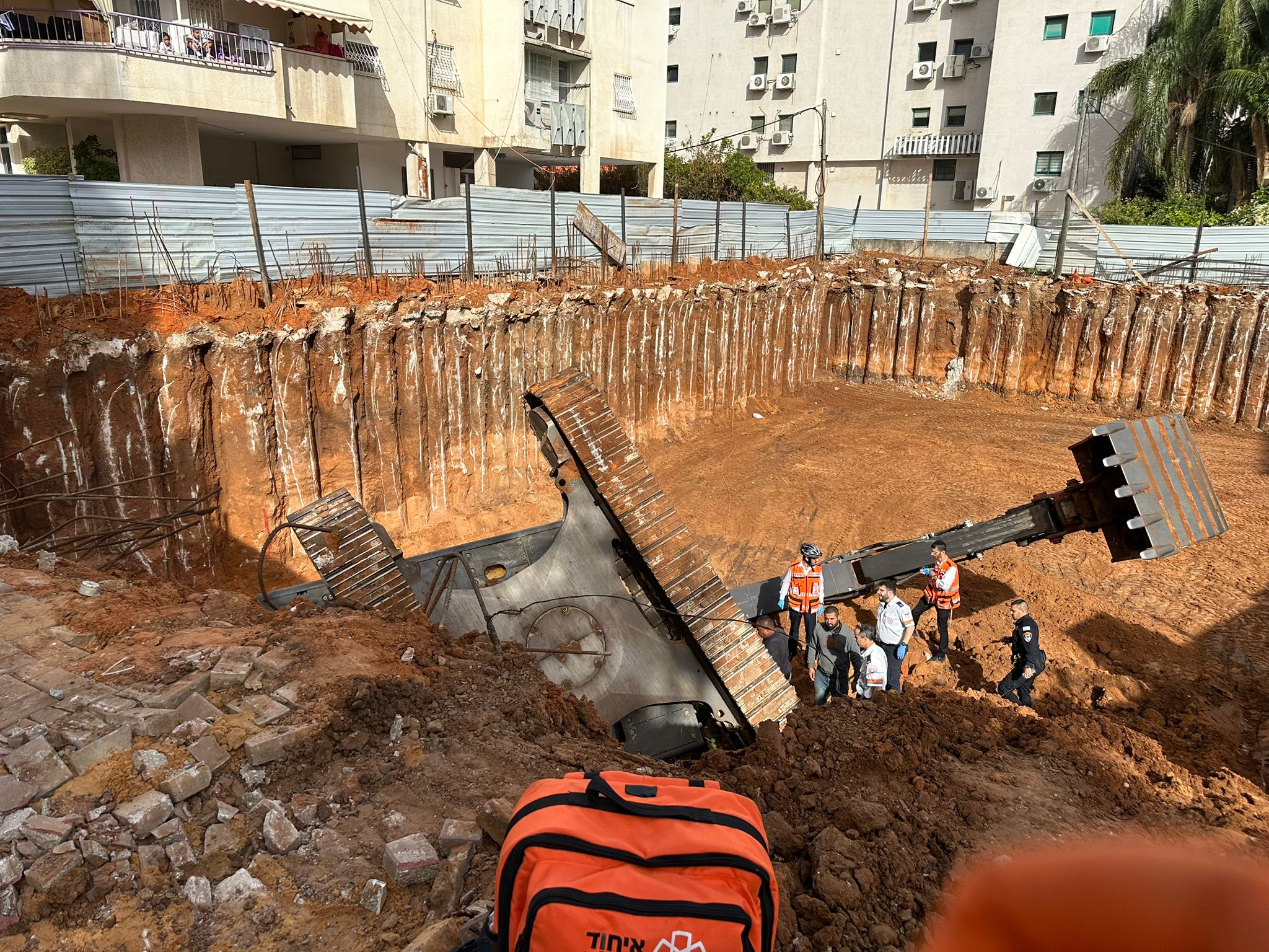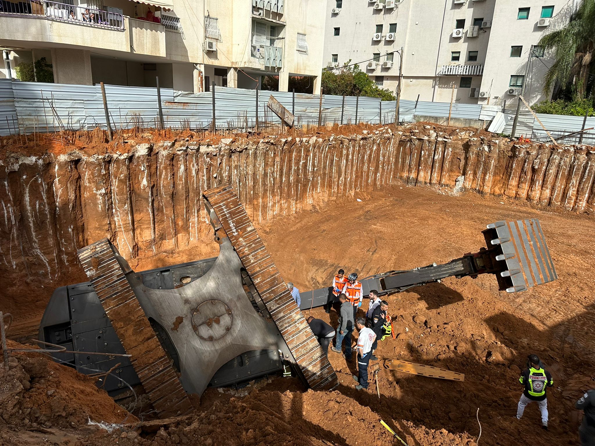 דיווח ראשוני על כלי צמ"ה שהתהפך לתוך בור באתר בנייה ברחוב הנביאים ברחובות.