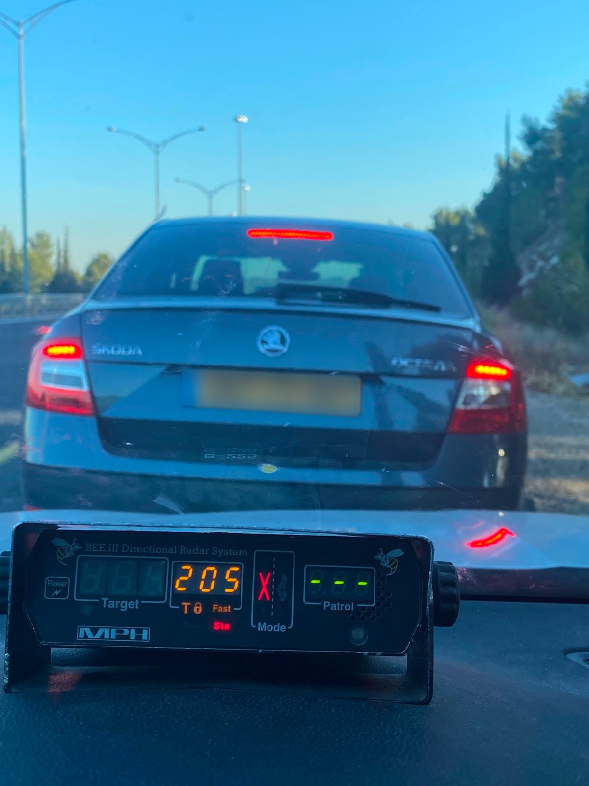 שוטרי משטרת תנועה ארצית בגזרת לכיש שעסקו בפעילות אכיפה יזומה נגד עבירות מסכנות חיים קלטו במכשיר למדידת מהירות, רכב פרטי הנע במהירות מופרזת של 205 קמ"ש בכביש 6 בסמוך למחלף קריית גת.