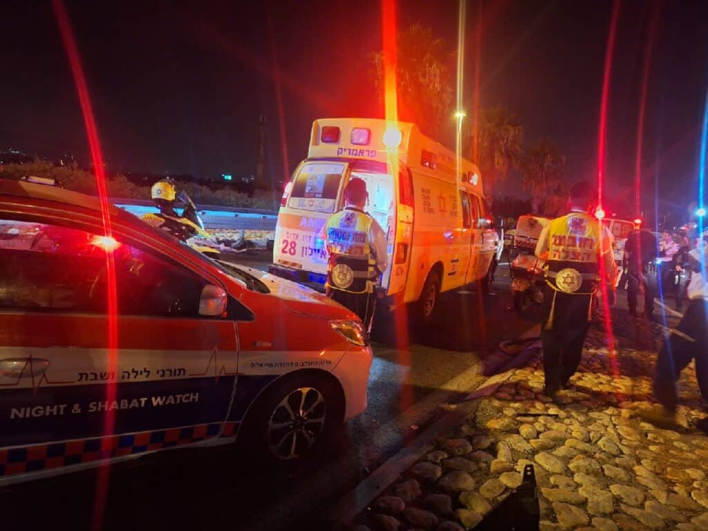 פראמדיקים של מד"א קבעו את מותה של אישה בשנות השישים והעניקו טיפול רפואי ומפנים לבי"ח שיבא בתל השומר, גבר כבן 30 במצב קשה, עם חבלה רב מערכתית.
