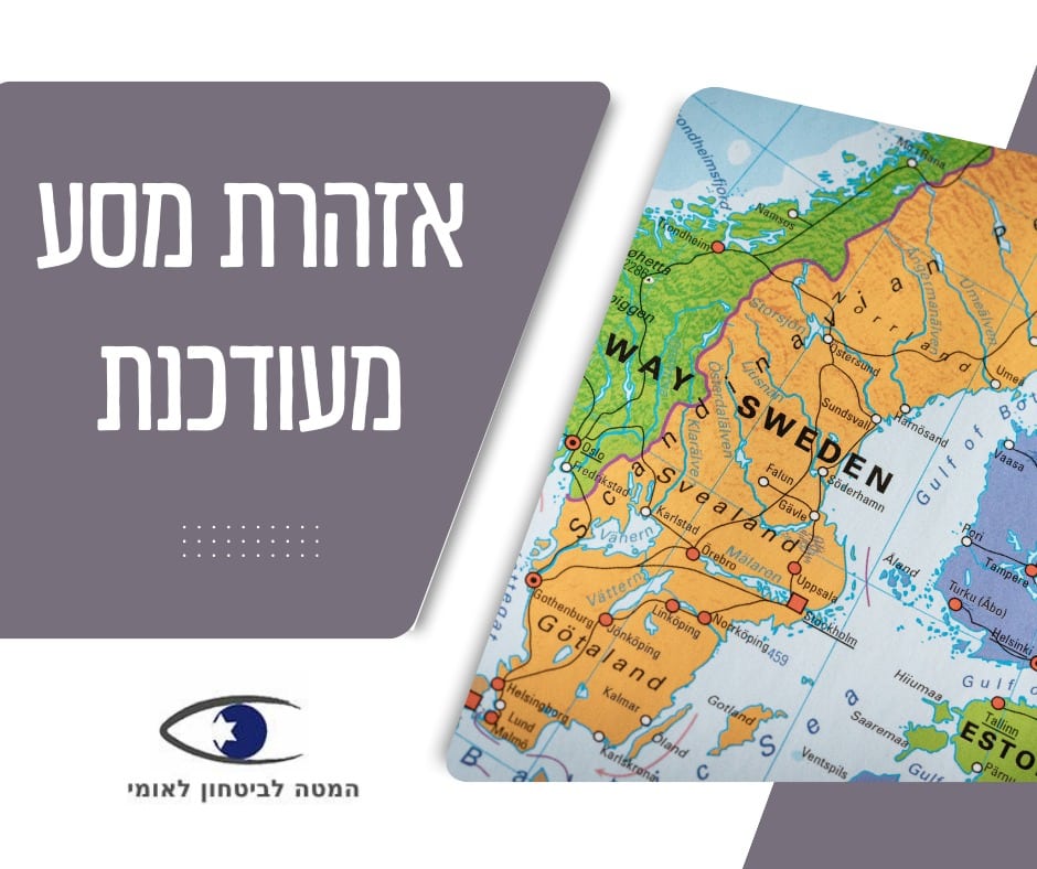 לאור זאת, המטה לביטחון לאומי (המל"ל) מחמיר את אזהרת המסע על העיר מאלמו (ללא שינוי באזהרת המסע על כלל שוודיה) מרמה 2 (איום מזדמן) לרמה 3 (איום בינוני) וממליץ לישראלים המתעתדים להגיע לעיר לשקול את חיוניות הנסיעה. אזהרת המסע תהייה מתוחמת לתקופת אירועי האירוויזיון ובכפוף להערכת מצב.
