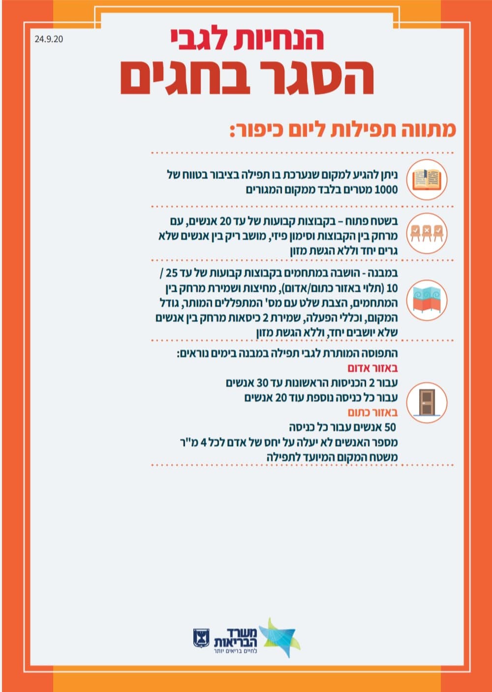 אלה ההנחיות הסופיות לקראת הסגר בתפילות יום כיפור, סוכות ושמחת תורה