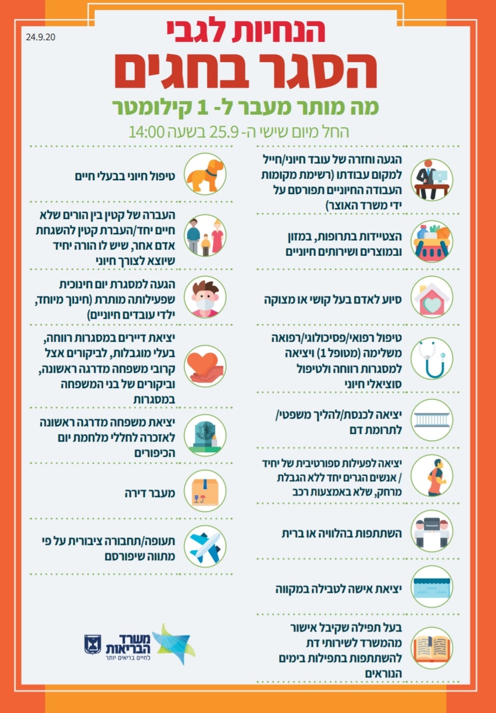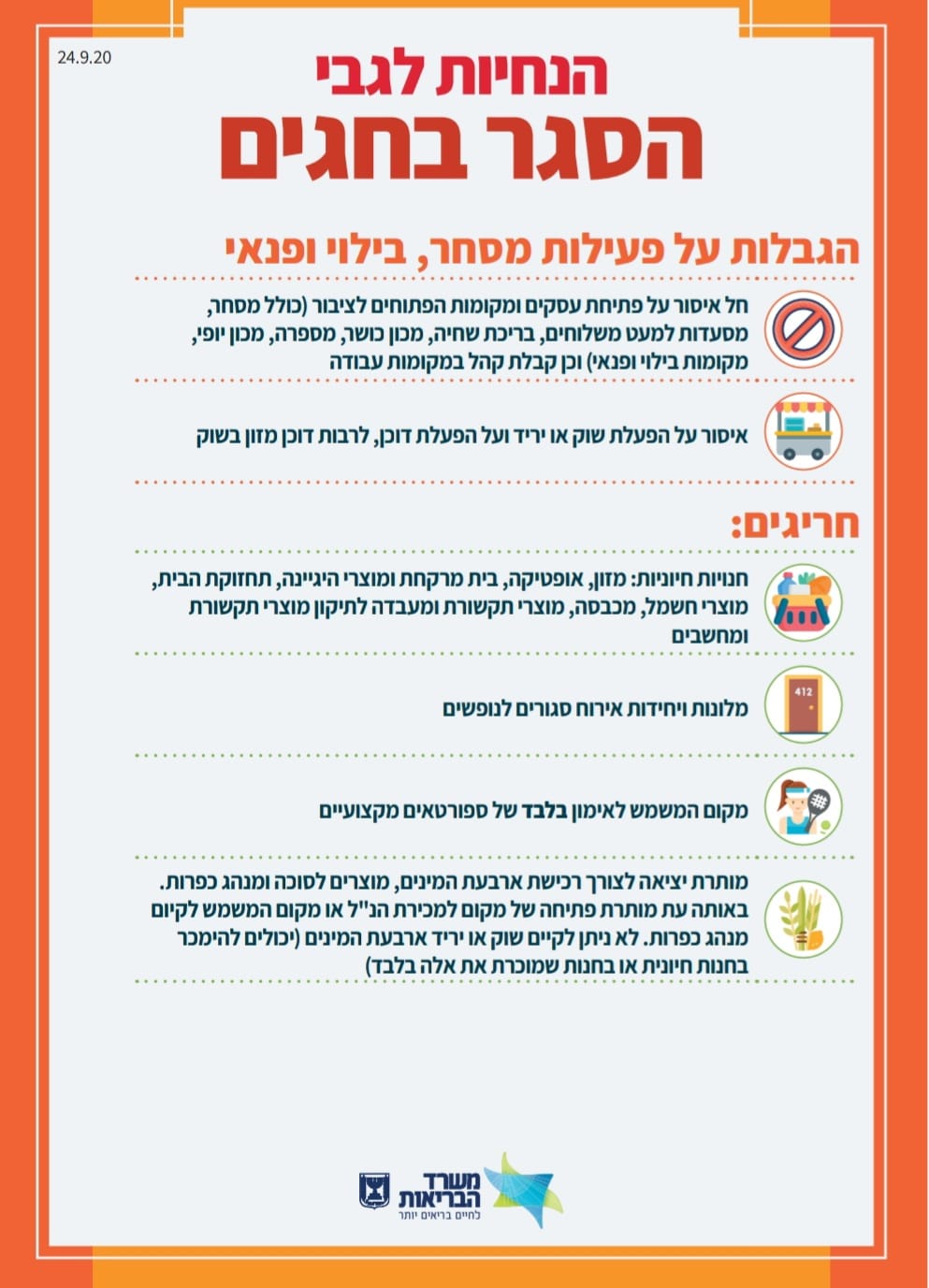 יום הכיפורים הקרוב לא יהיה דומה לשום דבר שהכרנו. גם לא סוכות או שמחת תורה. לכל אלו שלא יודעים עדיין מה מותר ומה אסור – בשביל זה אנו כאן!! אלו הן ההנחיות הסופיות לקראת הסגר שיחל ממחר (שישי) ועד צאת שמחת תורה, לפי משרד הבריאות.