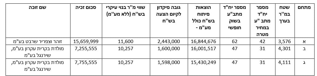 9 הצעות הוגשו למכרז בו שווקה בהצלחה קרקע ב-3 מתחמים לבניית 260 יח"ד, מהן 104 במחיר מטרה ו-156 בשוק החופשי. הזוכות ישלמו על הקרקע סכום כולל של כ-30,671,109 ₪ (לא כולל הוצאות פיתוח ומע"מ).