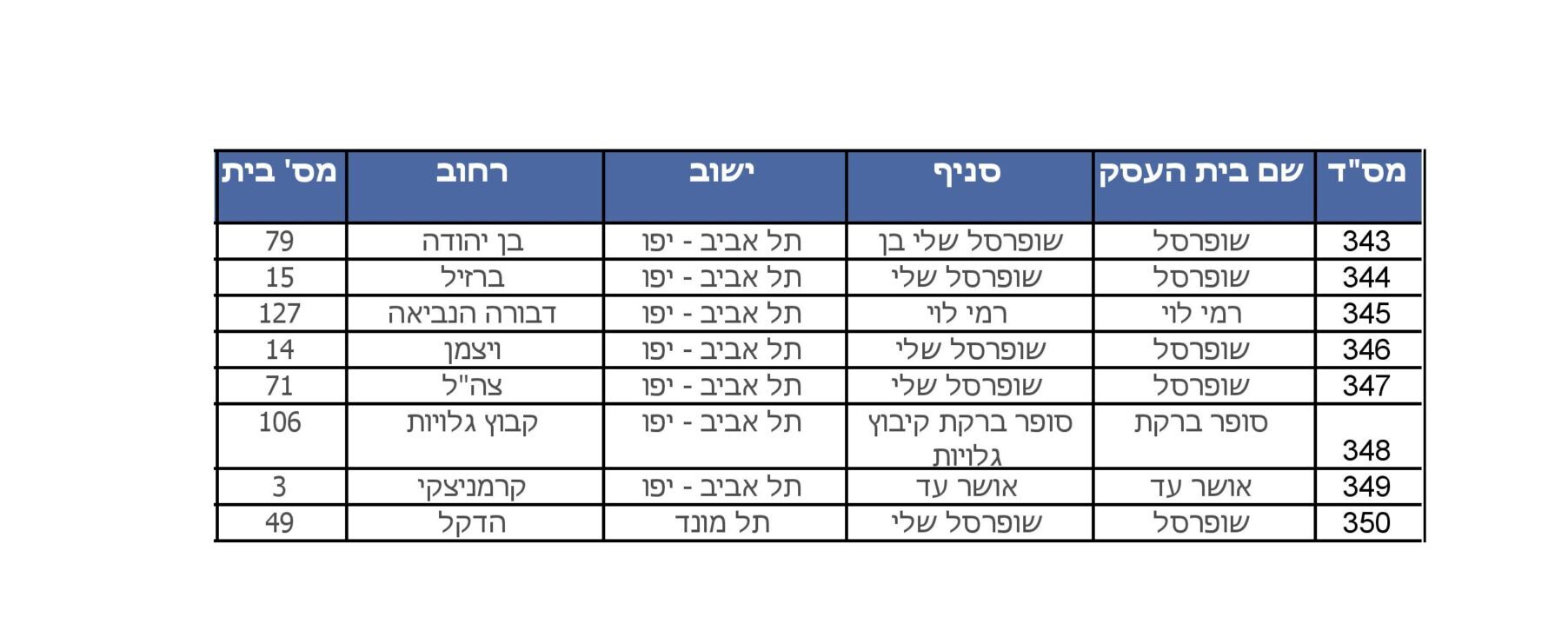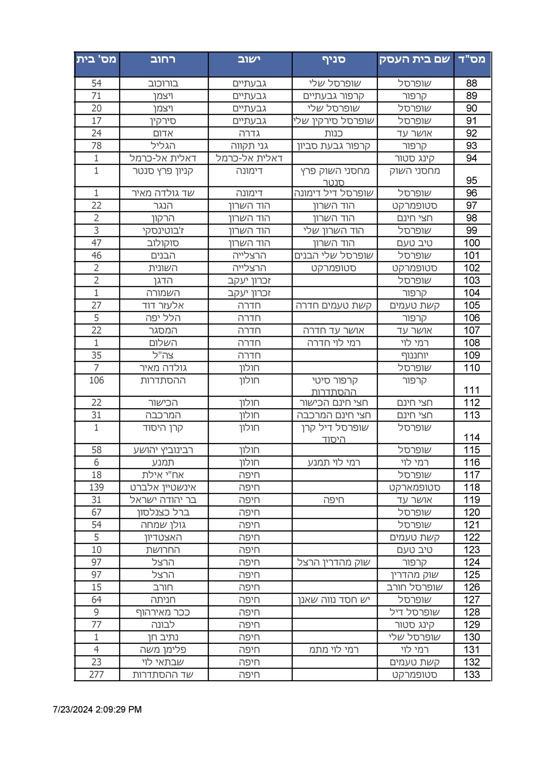 להלן רשימת הסניפים של רשתות השיווק שיהיו פתוחות לציבור בישראל בשעת חירום: