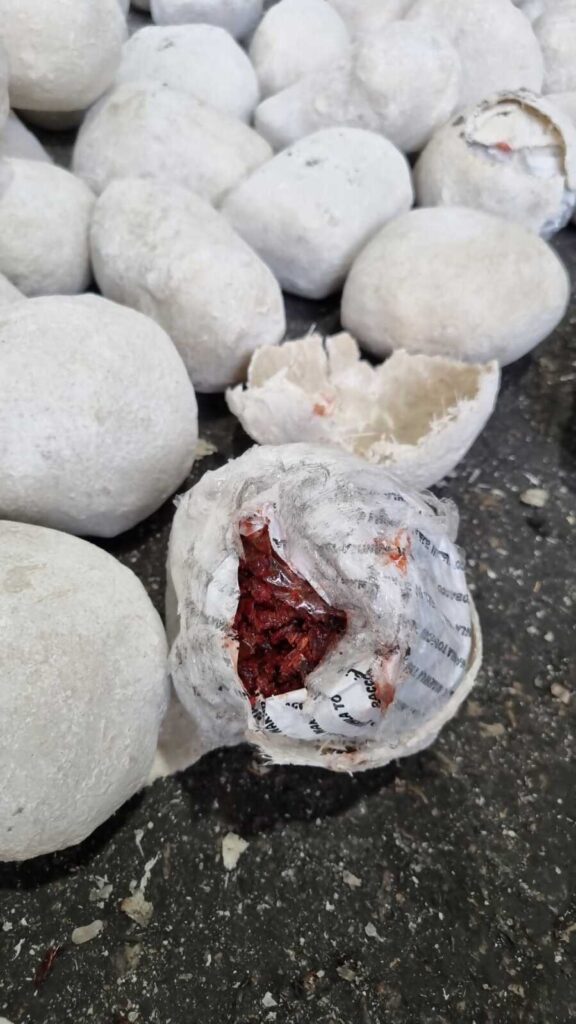 במהלך הבדיקה הבחינו הבודקים כי חלק מחלוקי הנחל הינם מעובדים ומיוצרים מפיברגלס ואינם טבעיים כפי שהוצהר במסמכי היבוא. בעקבות זאת, הוחלט להעמיק את הבדיקה ולשבור מספר חלוקי נחל לא טבעיים. לתדהמת הבודקים התברר כי בכל חלוקי הנחל המעובדים ישנו חלל גדול המכיל 600 גרם של טבק בטעמים לנרגילות, שלא הוצהר עליו למכס. בבדיקה יסודית שנערכה נמצאו 10,000 חלוקי נחל מעובדים כאשר הטבק שהוסלק בתוכם הגיע למשקל כולל של כ-6000 ק"ג. כפי שניתן להבחין מאופן ההסלקה, נראה כי היבואן פעל באופן מתוחכם ומתוכנן תוך השקעת משאבים רבים וזאת על מנת להונות את בודקי המכס ולהתחמק מתשלום מס אמת.