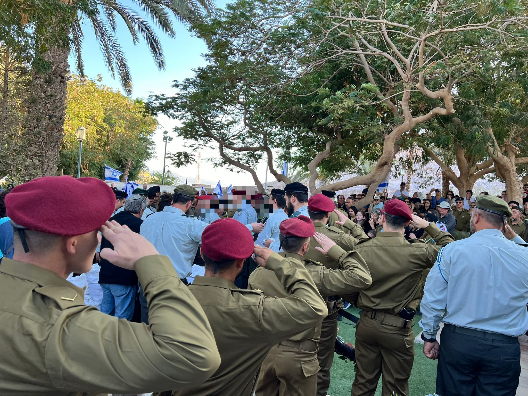 זרים הונחו על ידי נציג צה"ל – תת אלוף איתמר בן חיים, זר היחידה הונח על ידי סרן א׳, זר העירייה הונח על ידי ראש העירייה – אלי לנקרי, זר יד לבנים אילת הונח על ידי שמעיה ויצמן, זר אלמנות ויתומי צה״ל הונח על ידי טלי סלע, זר המשפחה הונח על ידי כרמי אחיה של האם שרה. לאחר הנחת הזרים בוצע ירי כבוד.