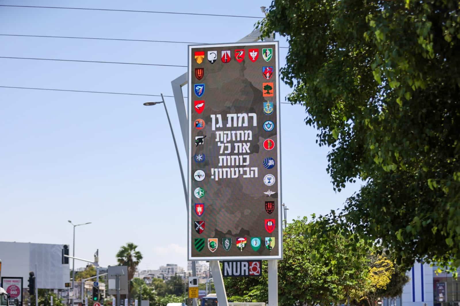 במקביל לדגלים נתלו גם שלטי חוצות עם הכותרת: ״רמת גן מחבקת את כוחות הביטחון״.