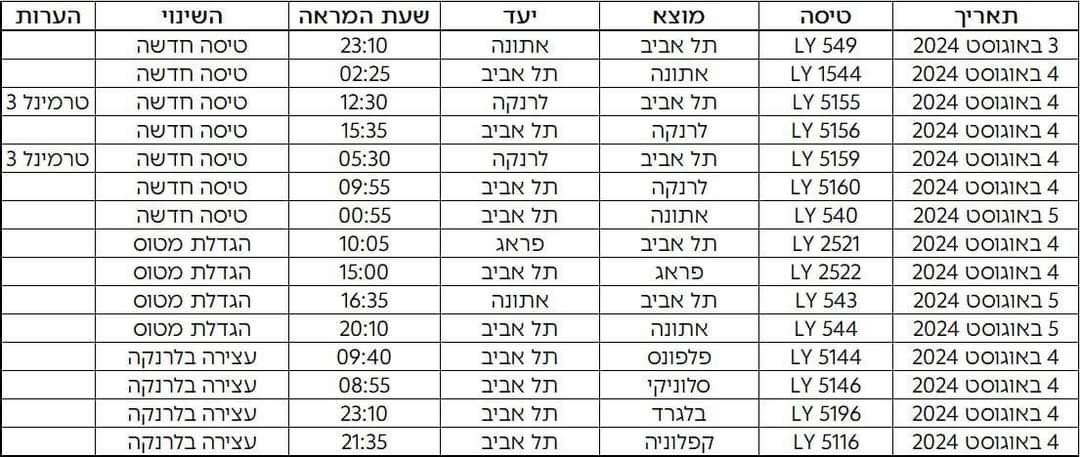 מצורפת מטה טבלה עם תוספת הטיסות החדשות והשינויים בטיסות הקיימות: