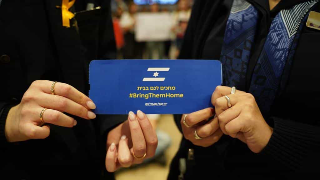 אל על עיצבה בורדינג פס חדש המשלב את המסרים מחכים לכם בבית ו- BringThemHome# כחלק מהתמיכה והסיוע של החברה בפעילות מטה משפחות החטופים.