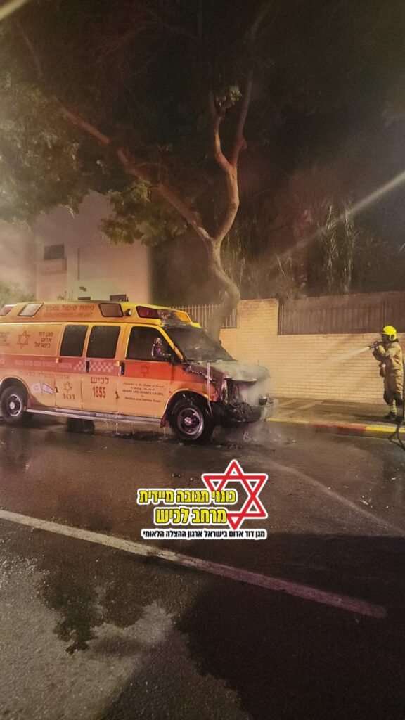 כשהגיעו לוחמי האש למקום נדהמו לגלות שמדובר באמבולנס של ארגון מגן דוד אדום.