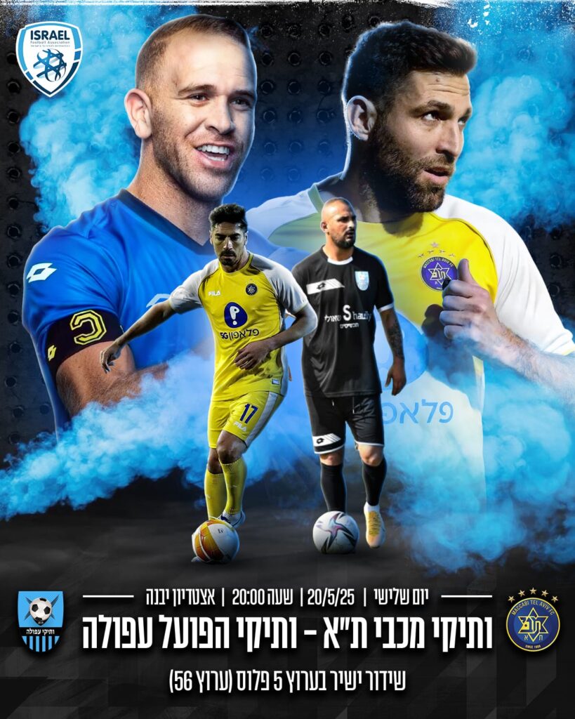 אצטדיון הכדורגל ביבנה יארח הערב (שלישי, 20.5, שעה 20:00) את משחק גמר ליגת הוותיקים בכדורגל לעונת 2024/5 – משחק אליפות יוקרתי בו יפגשו וותיקי מכבי תל אביב ווותיקי הפועל עפולה לקרב ספורטיבי על צלחת האליפות.